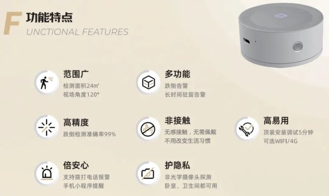 跌倒,这一老年人常见的意外风险,往往带来严重后果。理工sunbet申搏官方网站的智能跌倒检测仪,采用毫米波雷达技术,精准感知室内人员动态。一旦老人跌倒,检测仪立即告警,并通过手机小程序通知家属或护理人员。此产品高精度、广范围、非接触,24小时守护老人安全,且区别于光学摄像头探测,利用毫米波雷达技术进行非接触方式监测,完全尊重用户隐私,让守护更安心。