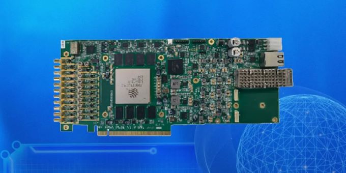 产品基于复旦微RFSOC芯片构建,6收8发,接收最高采样率支持4.6Gsps,发射最高采样率支持6.5Gsps,具备1路40G/100G光纤接口,可通过转换卡实现外围信号类接口拓展。产品采用标准金手指设计,满足工业级标准,可满足100%自主可控要求,应用于阵列雷达、航天测控、电子对抗、仿真测试系统等领域。