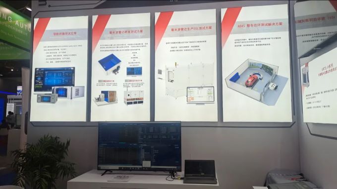 展会现场,理工sunbet申搏官方网站展出的毫米波雷达测试仪和GNSS信号模拟器,以及包括这些设备在内的综合测试系统解决方案,吸引了众多行业专家和观众驻足交流。