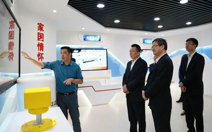 刘峰总经理首先对赵东董事长、汤建奇副总经理的到来表示欢迎。在展厅,他向赵东董事长介绍了公司发展历程和产业布局等情况,以及公司自主研发并成功实践应用的:机场鸟情探-驱-管一体化系统、无人机反制系统以及智能网联车路协同系统等。赵东董事长积极肯定公司的科研实力,并对部分产品进行详细了解。